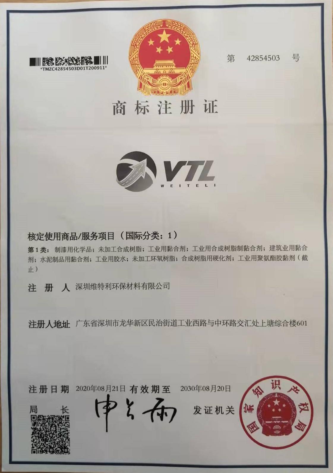 公司有著一支專業技術開發團隊,在水性及無溶劑高分子樹脂領域具有十幾年的開發經驗,企業緊密聯系客戶需求以及國家政策導向,自主研發了一系列水性及無溶劑高分子樹脂材料,產品主要有水性絕緣漆、無溶劑絕緣漆、地坪漆、玻璃漆樹脂、金屬烤漆樹脂、木器及工業漆用水性樹脂、路面材料等等.公司先后榮獲“質量、服務、誠信AAA企業”、“中國工程建設推薦產品”、“中國地坪行業馳名品牌” 等榮譽。公司產品都已通過質量監督檢測部門的檢驗,并達到國家標準。維特利將與您攜手共創美好的明天! 【查看更多+】certificates